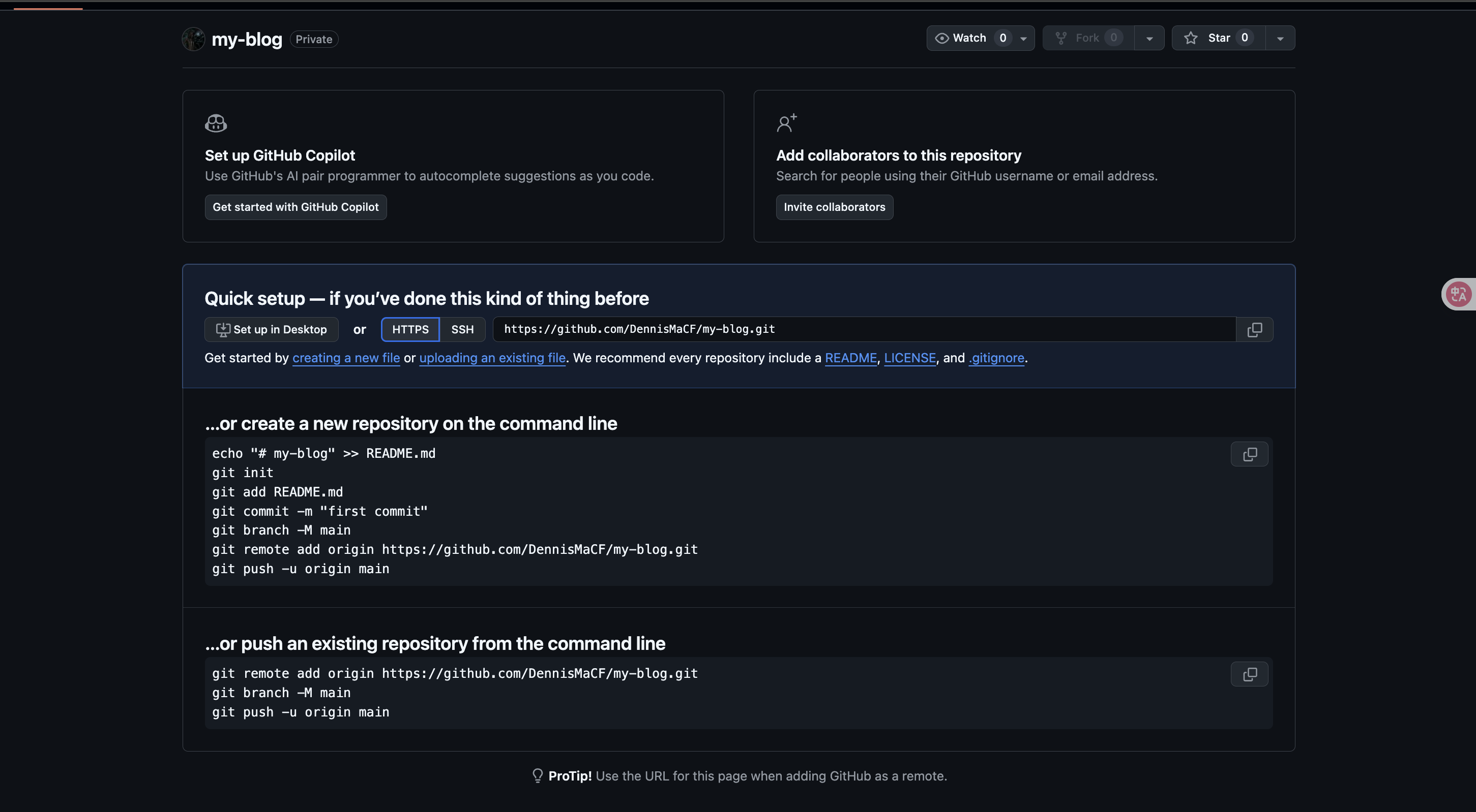 git remote add origin https://github.com/DennisMaCF/my-blog.git